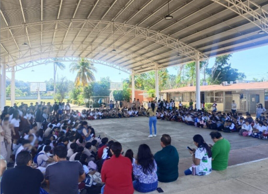 Personal de Participación Ciudadana de la Secretaría de Protección y Seguridad Ciudadana impartió las pláticas Prevención de las Adicciones (Campaña permanente contra el fentanilo) y Uso Correcto de las Redes Sociales en la Escuela Secundaria No. 12, ubicada en la Junta Municipal de Pomuch, municipio de Hecelchakán.