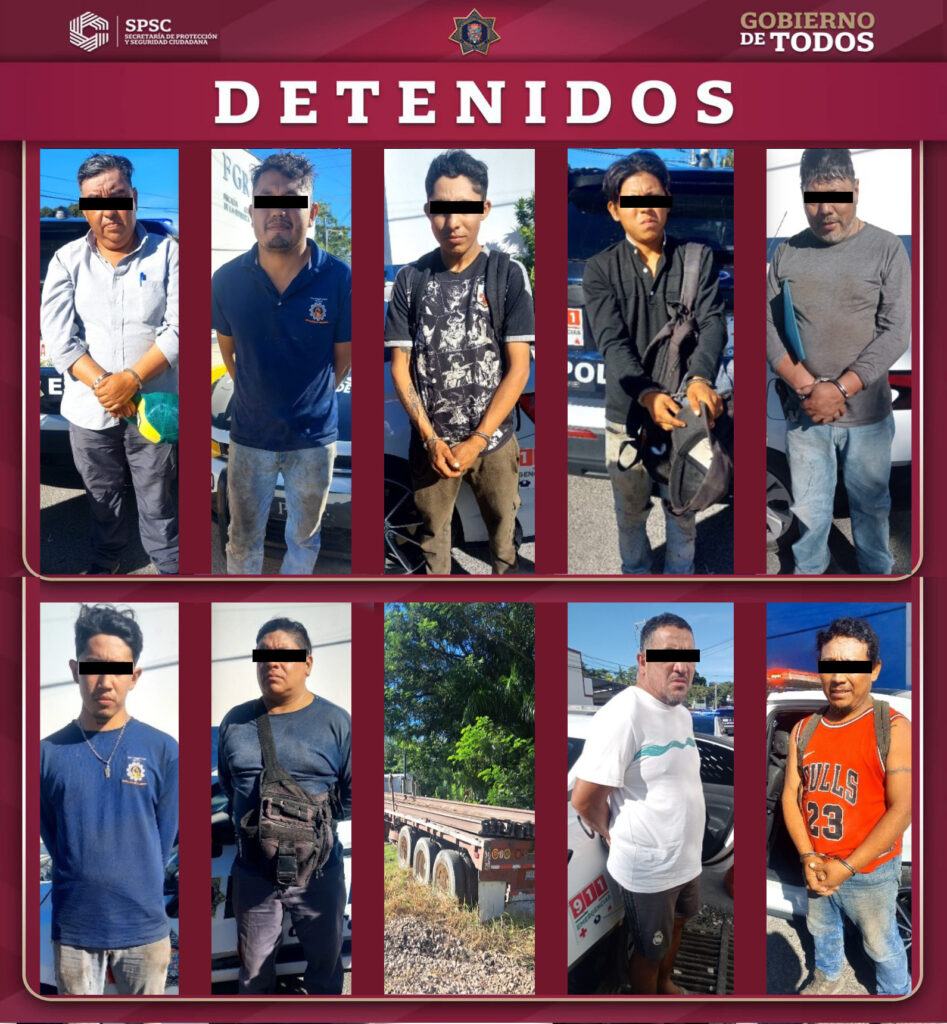 POLICÍA ESTATAL DETIENE A NUEVE PERSONAS POR ROBO DE RIELES EN CAMPECHE.