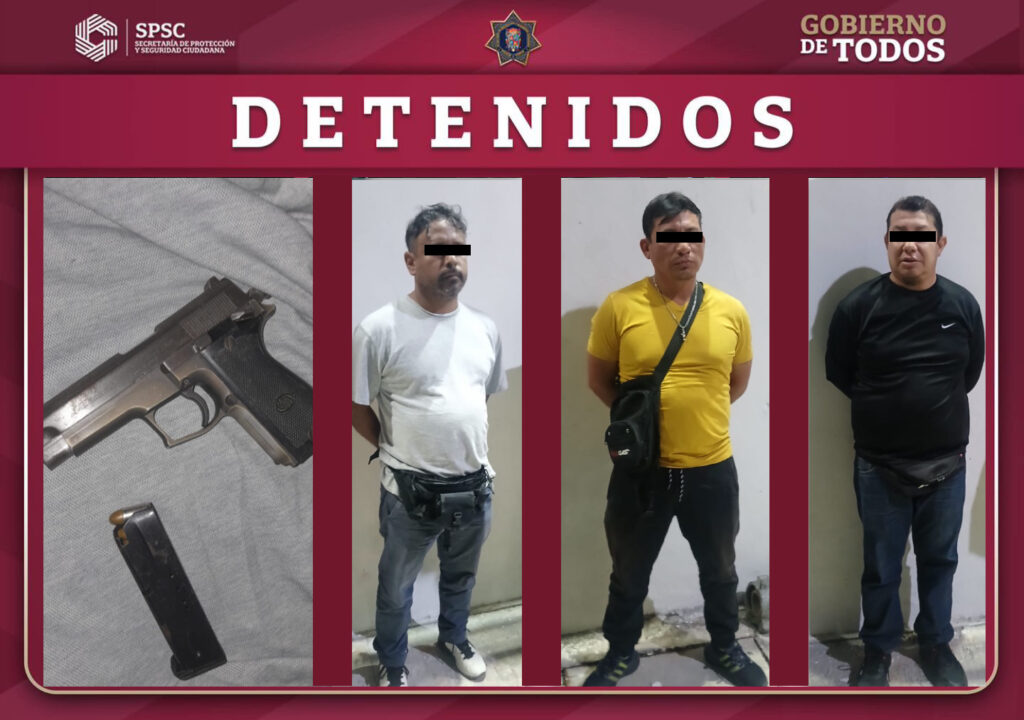 Al no acreditar la documentación que amparara la portación legal del arma, los tres individuos fueron detenidos y, junto con el arma asegurada, puestos a disposición de la Fiscalía General de la República (FGR) para los trámites correspondientes.